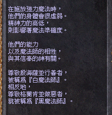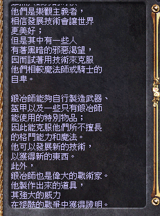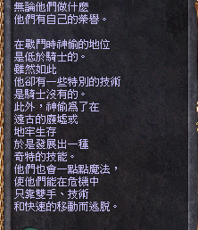 在創造人物時的角色介紹內容: (神偷和盜賊應該是同1人物卻被重複設定) (在2.02版後 角色創立時的介紹有更動)